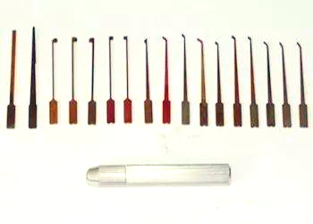 再技艺高超的开锁师傅,也离不开专业开锁工具的助力。针对不同类型的防盗锁具,需选用相应的开锁工具,方能施展技术性开锁之妙手。如图所示,这套一字锯齿型开锁工具,便是开锁师傅的得力助手。在他们的巧妙操作下,该工具能轻松实现无损开启一字锯齿防盗锁、锯齿型汽车锁以及卡巴锁,展现精湛技艺。